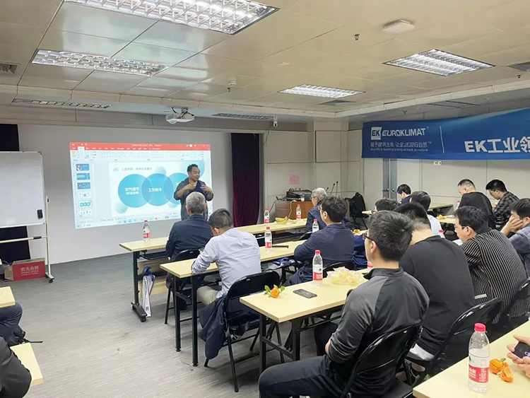 交流會上,EK空調(diào)IECD事業部主管楊衛(wèi)剛和現場嘉賓介紹了(le)EK變頻直膨式空氣處理機組、變頻冷凝熱(rè)回收直膨機組、高大空間射流(liú)直(zhí)膨空調機組(zǔ)等直膨工業產品的特(tè)點,以及它們在工業場景的應用。