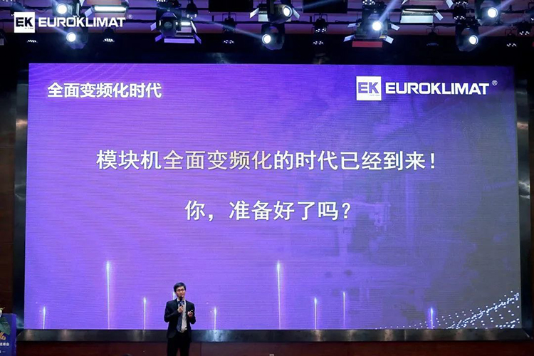 EK空調中國區董事長兼總(zǒng)裁李鵬舉則介紹了國家“雙碳”政策下,EK空調推出的變頻模塊(kuài)機、雲智慧高效(xiào)集成冷站等一係列高效節能產品和EK-AloT智慧雲(yún)係統。李總表示, EK空調早在兩年前已經開始(shǐ)部署AloT智慧雲係統,並通過降低產品價格、提高產品能效、縮短產品工程周期等方式為經銷(xiāo)商客戶提供最具市(shì)場競爭(zhēng)力、性價比最高、符合國家相關政策(cè)的標準化、信(xìn)息化產品。在新能源電池、數據中心、高效機房改造等項目中,EK可提供各種有利“武器”,為客戶持續創造價值!