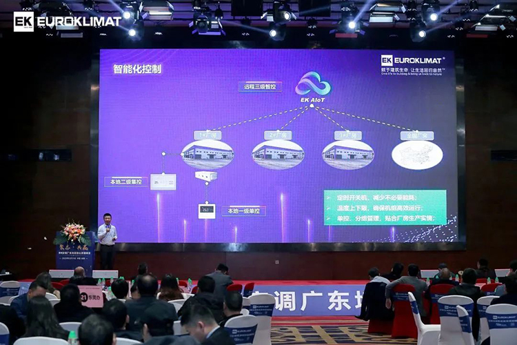 會議現場,EK空調產品經理就雲智慧高(gāo)效集成冷站、工(gōng)業大多聯、變頻模塊機(jī)等EK核心(xīn)產品的優勢(shì)特點、應用場景、應用案例進行了詳細介(jiè)紹。