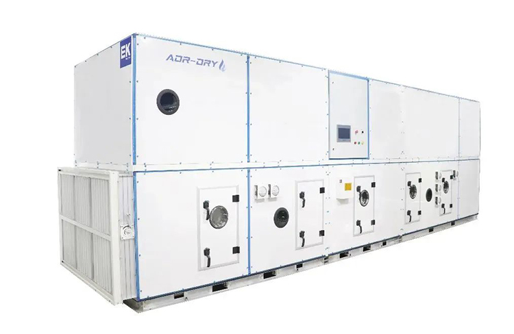ADR-DRY X2.0一體化高(gāo)效轉輪除濕機是EK在新(xīn)能源電池領域除濕解決方(fāng)案的拳頭產品,適用於低(dī)露點的工藝要求,最低露點可達-80℃,可應(yīng)用於電芯烘烤、注液、封(fēng)口(kǒu)等鋰電工藝車間。