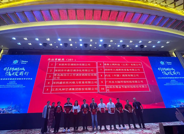 5月26日,由(yóu)深圳市製冷(lěng)學會、深圳市土木建築學會暖通空調專業委員會、中國勘察設計協會建築環境(jìng)與能源應用分會(深圳)主辦的“2023年深圳市(shì)暖通空調製冷學(xué)術年會”在廣東嘉華大酒店隆重召開。EK空(kōng)調作為行(háng)業領先的(de)中央空調係統集成商和服務商以及深圳市製(zhì)冷學會常務副理事長(zhǎng)單位,受邀參會發表主題演講,並榮獲“傑出貢獻獎”。