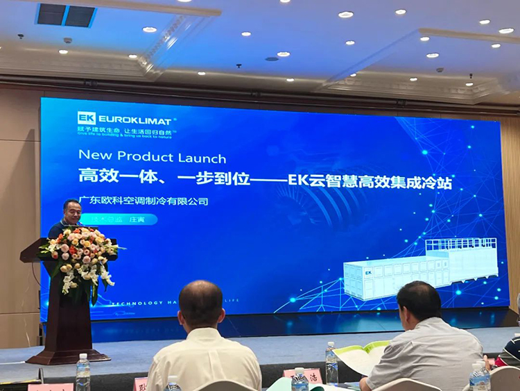 年(nián)會現場(chǎng),EK空調技術應用總監莊寅以《高效(xiào)一(yī)體、一步到位——EK雲智(zhì)慧高效集成(chéng)冷站》為(wéi)題(tí)發表(biǎo)演講,和現場嘉(jiā)賓介紹(shào)了EK高效機房係統核心產品——分布式-雲智慧高效一體集成冷站的組成、特點、優(yōu)勢、應(yīng)用場景和(hé)項目案例。