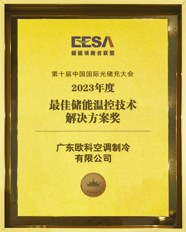 EK儲能溫(wēn)控(kòng)係統憑借高(gāo)效、節能、智能化等優勢,獲得組委會的肯定,榮獲(huò)“2023年度最佳儲能溫控技術解決方案(àn)獎(jiǎng)”。該獎項表明了行業對(duì)EK創新(xīn)能力和研發能力的高度認可,是(shì)EK品牌實力和影響力的有力見證。