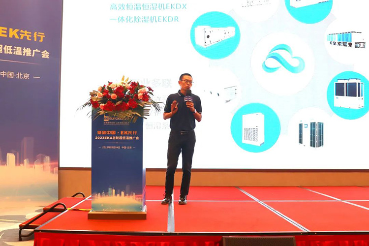 隨後,EK空調北京辦事處總經理鄒林(lín)分享了北京辦事處上半年的銷售業(yè)績,在工業、醫療(liáo)、數據中心等領(lǐng)域的用戶分布(bù)情況,以及EK在新能源、新基建、民生等領域的解決方案和核(hé)心產品。