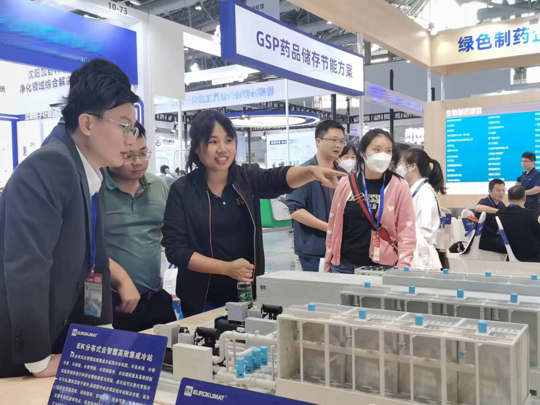 憑借其領先(xiān)的技術和低碳理念,EK在本次盛會上再次成為矚目(mù)的焦點,展位現場人頭攢動,行業專業人士紛(fēn)紛前來參觀交流,展台熱度持續(xù)飆(biāo)升。EK工作(zuò)人員為參觀(guān)嘉賓詳細講解EK節能(néng)產品和低碳解決方案在製藥行(háng)業的應用場景和應用優勢,幫助(zhù)客(kè)戶更深(shēn)入了(le)解如何通過EK的節能產品和解決方案來(lái)實現(xiàn)低(dī)碳環保製(zhì)藥企業建設,共同探討製藥(yào)企業高質量、可持續發展(zhǎn)新思路。