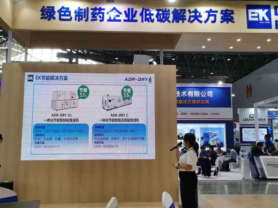 展位(wèi)現場,EK技術工程師通過多場主題演講,分別解析了製藥(yào)車間的低碳(tàn)恒溫恒濕係統、製藥車間低濕環境節能解決方案 、EK雲智慧分布式(shì)高效(xiào)集成能(néng)源站EK綠色製(zhì)藥企業低碳解決方案。這(zhè)些節能產品和低碳方案的推出,為製藥行業提供了更多實現低碳環保建設的選擇,共同探討了(le)製藥企業高質量、可持續發展的(de)新思路。
