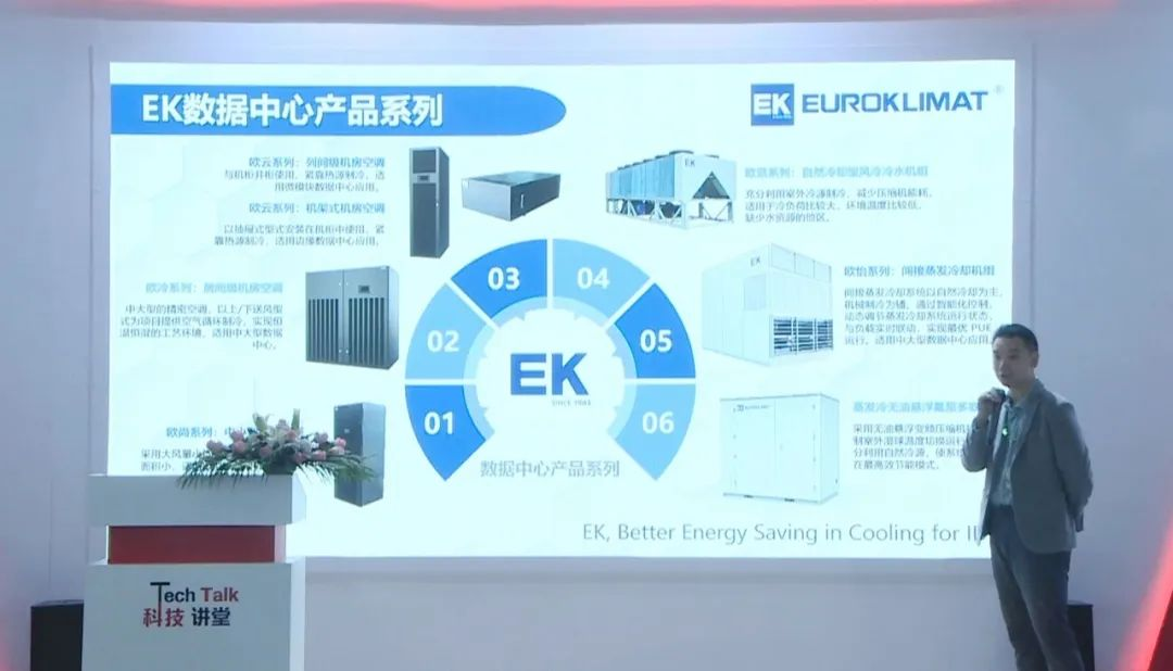 在Techtalk科技講堂上,EK數據中心產品應用主管古正中發表了題為《EK如何讓數據中心更科學節能》的(de)演講。數字化時代(dài),數據中心作為信息(xī)技(jì)術的核心基礎(chǔ)設施,扮演著越來越重要的角色。然而,數據中心(xīn)一(yī)直以來都麵臨著高能耗的問題。據國家電力網統計,2023年國內數據中心年耗電量預測將(jiāng)達到2950億千(qiān)瓦時,占全社(shè)會用電量的3.6%。在這一背景下,如何實(shí)現數據中心(xīn)的低碳(tàn)綠色發展成為業界亟需解決的挑戰。