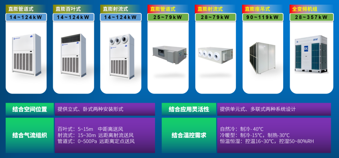 EK新(xīn)一代綠色工廠工業(yè)多聯解決(jué)方案,具有立式、臥式兩(liǎng)種安(ān)裝形式,提供百葉式、射流式、管道式多樣化送風形式,結合應用靈活性提供單元式、多聯式兩種形式,產品包括自然冷型、冷暖型、恒溫恒濕型,涵蓋工業廠房溫控解決方案、工業變配電室解(jiě)決方案、工業倉儲解決方案。