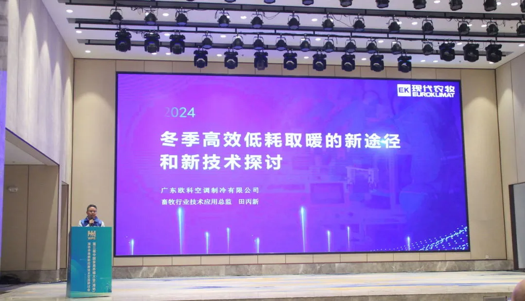 會上(shàng),EK畜牧業首席專(zhuān)家(jiā)田丙新發表題為(wéi)《冬季高效低耗取暖的新途徑和新技術探討(tǎo)》的(de)主題演講。他從集約化養殖供暖能源應用現狀、供應需(xū)求、技術方案、行業挑戰、實際案例等方(fāng)麵詳細介紹EK集約化養殖解決方案(àn)。