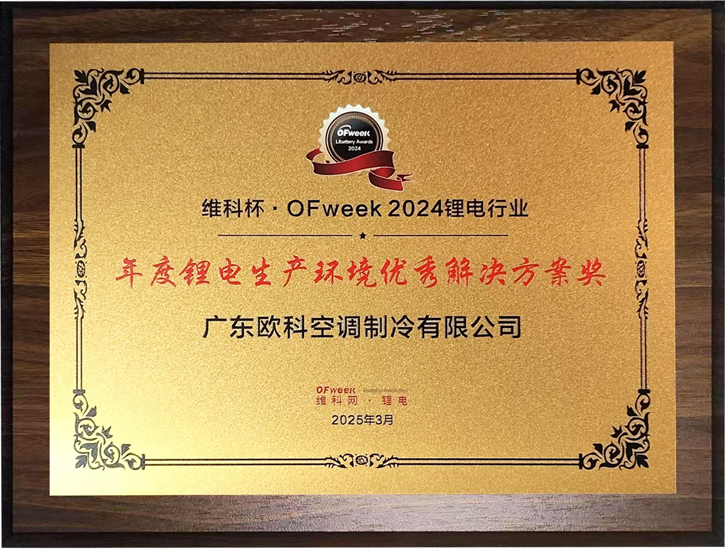 EK工業空調榮膺(yīng)“維科杯·OFweek 2024鋰電生產環境優秀解決方案獎”