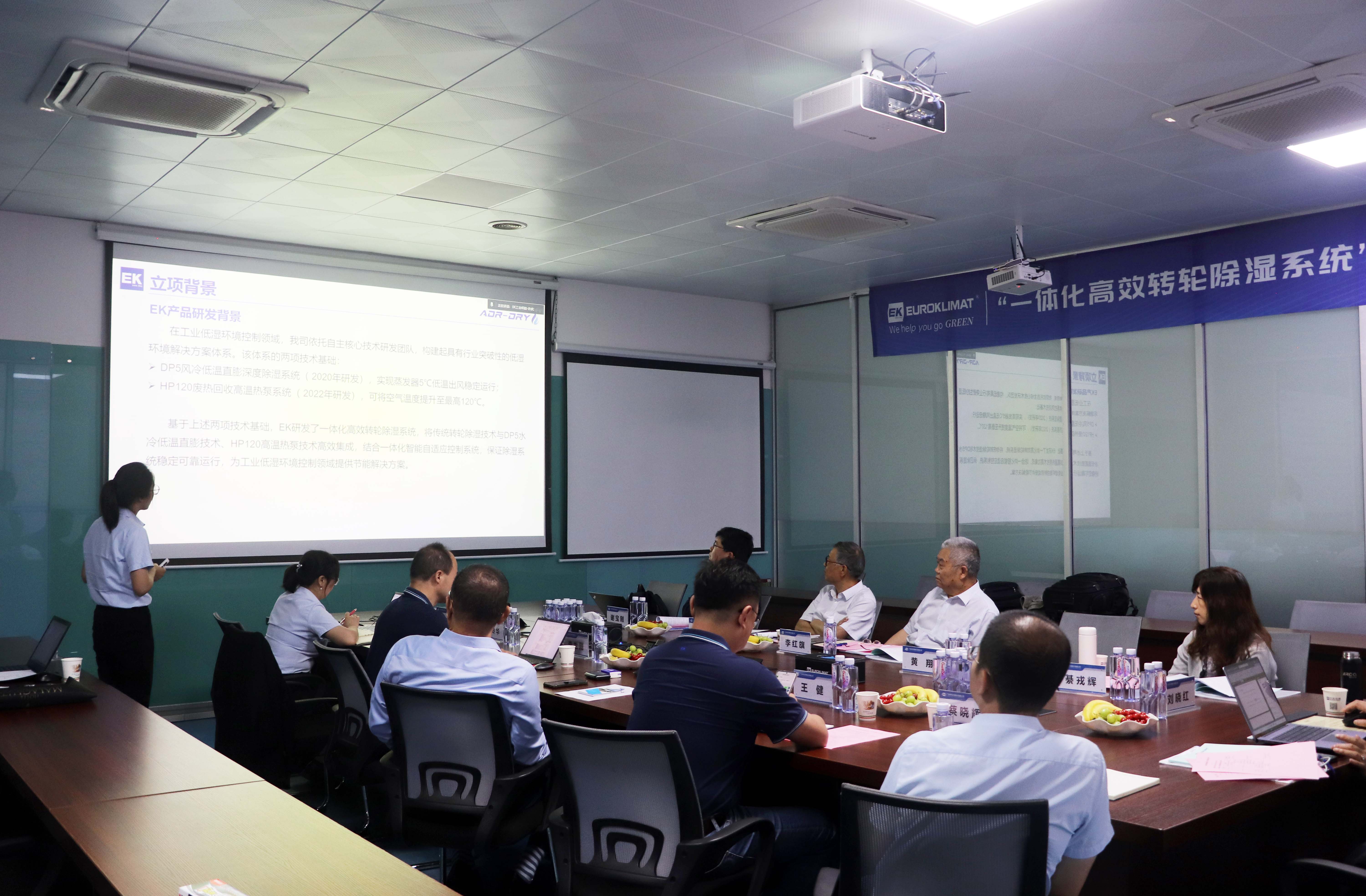 鑒定會上,通過聽取(qǔ)匯報、現場考察與數據核驗,鑒定委員會專家一致認為:該項目核(hé)心技術——低溫出風直膨係統設計及高精度無霜運行控(kòng)製(zhì)技術已達到國際領先水平;EK一(yī)體化高效低(dī)露點轉輪除濕係統,包括智能自適應控製(zhì)策略(luè)、EK-AIoT工(gōng)業物聯網能(néng)源優化(huà)管理平台,已達到(dào)國際先進水平。