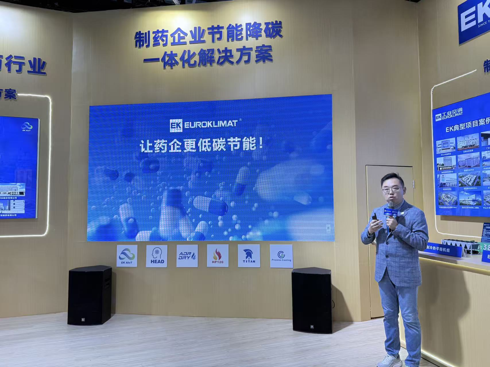 除產品展示外,EK工業空調在(zài)展位內(nèi)舉辦的多場主題演講同樣人氣高漲。EK多位技術負責人輪番(fān)登場,奉(fèng)獻多場知識(shí)盛宴,與現場觀眾共同探索製藥企業實現(xiàn)高質量、可持續發展的新思路。