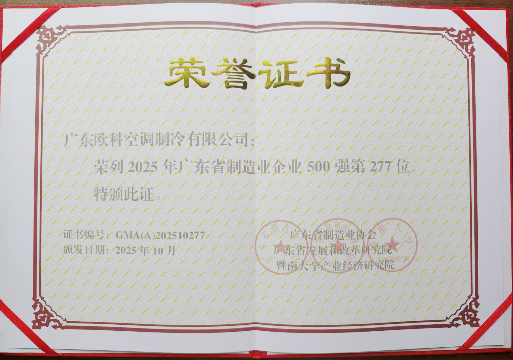 喜訊 | 連續9年登榜!EK空調榮(róng)列2025年廣東省製造(zào)業500強!