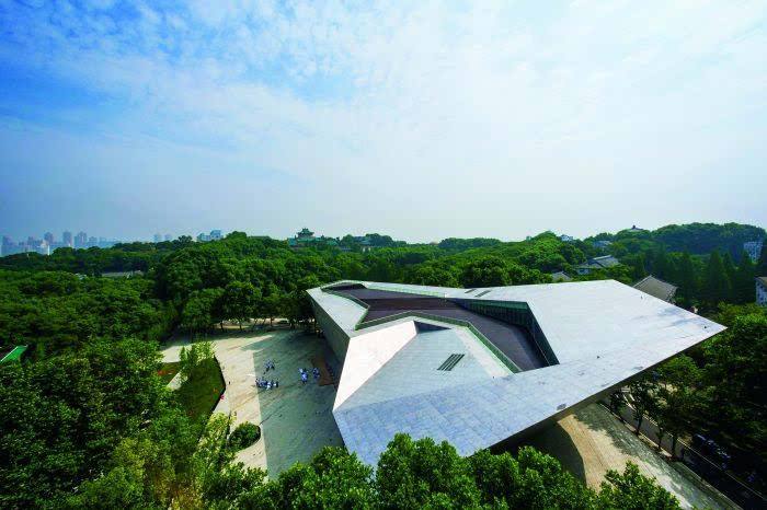 博(bó)物館總體(tǐ)建築麵積 8410.3平米,地下一層,地(dì)上三層,高達28米。2012年10月奠基,2014年12月完工。這(zhè)座建築(zhù)的落成,成就(jiù)了一個“國內第一”的建築難度, 建築總長度為78米,前端懸(xuán)挑跨度達48米,放眼望去,整個建築的大半樓體都處於(yú)懸空狀態。建築的外立麵(miàn)用鋁合金一塊一(yī)塊人(rén)工澆築、敲打而(ér)成,通過光線的 漫反射與周圍的自然環境相融(róng)合;而其凹凸的手工感,像一塊從天外飛來的巨大隕石,因此(cǐ)有人把這(zhè)座建築稱為“飛來石(shí)”。