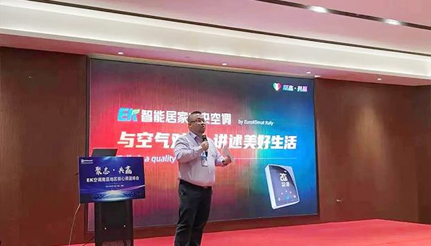 EK的產品能力是“合能”的關鍵之一,多年來,EK在產品研(yán)發(fā)上不斷突破,持續創(chuàng)新,力求為(wéi)用戶(hù)最大化的挖掘節能潛力,打造智能、環保、健康的(de)空氣調節設(shè)備和(hé)係統解決方案。會議現場,EK的產品技術支持工程師(shī)們(men)就EK四(sì)管製產(chǎn)品、全變頻智慧雲多聯機、智能居家中央空調等EK核心產品進(jìn)行了講解。