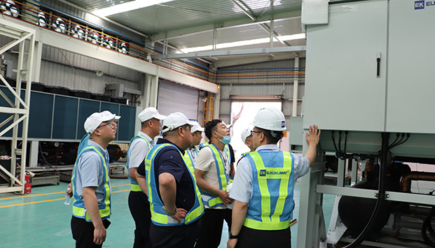 5月19日,“EK2021-千商活動”新疆辦首批經銷商嘉賓蒞臨EK南方基地參觀指導。EK銷售總監彭健明和EK市場部經理吳明全對嘉賓們的到來表示熱烈歡迎和感謝,並就未(wèi)來合作展開深入探討。吳明全介紹了EK的(de)品牌實力、競爭優勢、經營(yíng)方式和與商家合作理念。EK工程師分別就EK空氣處理機組、模塊(kuài)機組(zǔ)和多聯機產品做了詳細介紹(shào),並和大家分享了EK空調(diào)在新疆地區的經(jīng)典應用案例。EK四川項目辦事處銷(xiāo)售經理趙建新和EK新(xīn)疆辦事處銷售(shòu)經理陳立陪同參觀。